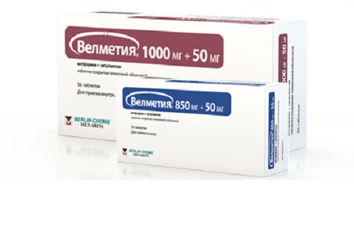 Велметия® 850мг + 50мг, 1000мг + 50 мг (метформин+ситаглиптин)ЛП-004547