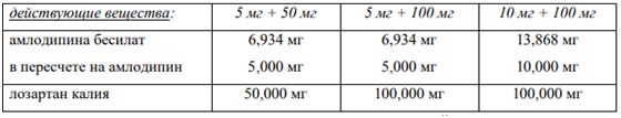 Действующее вещество/Аналог: Амлодипин Лозартан